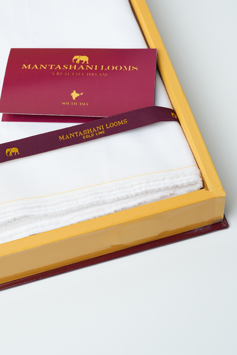 A study in tonal clarity, Kourash in White from the Gold Edition is rendered in fine four season cotton percale—an advanced textile construction favoured for its breathable weave and crisp hand feel. The immaculate white palette offers a blank canvas for bespoke interpretations, allowing precision in tailoring and fluidity in form. Designed for those who value discretion in colour and discernment in cloth.