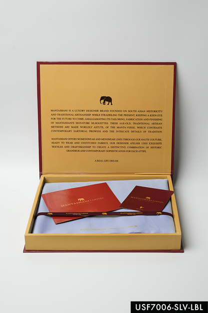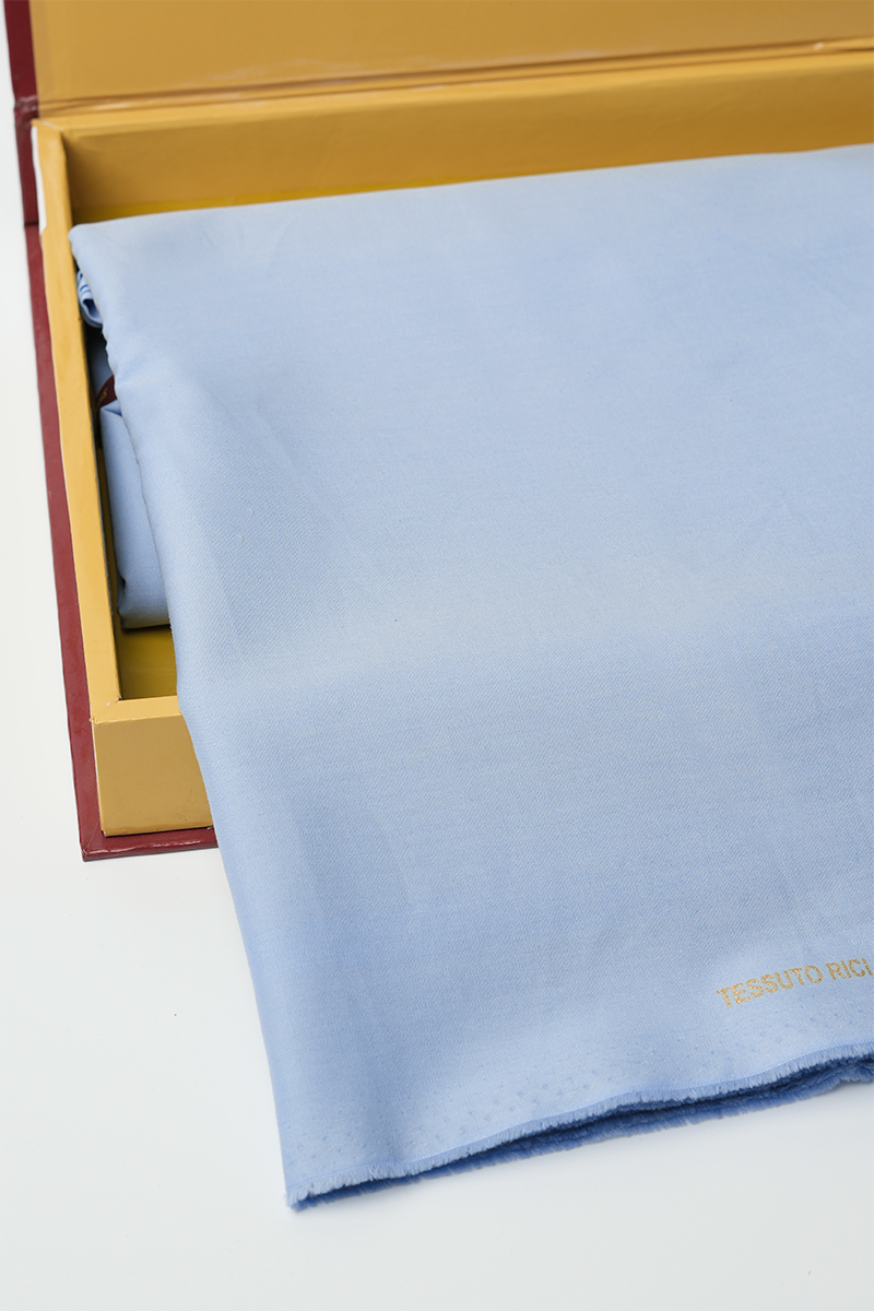 With a nod to precision in fabric engineering, Taimar in light blue offers a balanced fusion of comfort and structure. Composed of 60% cotton and 40% polyester, its 180 GSM weight and fine 45sx45s yarns provide an ideal surface for defined silhouettes without compromising breathability. The 58" width ensures generous fabric coverage for refined Eastern tailoring, while the four-season adaptability makes it suitable for year-round styling. Calm in tone yet precise in composition, Taimar brings ease, form, and visual clarity into a single textile story.