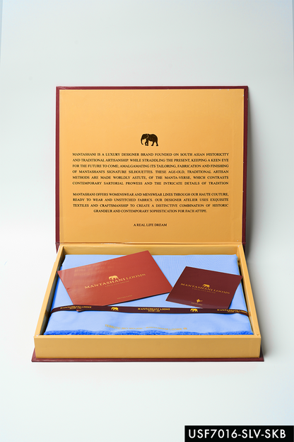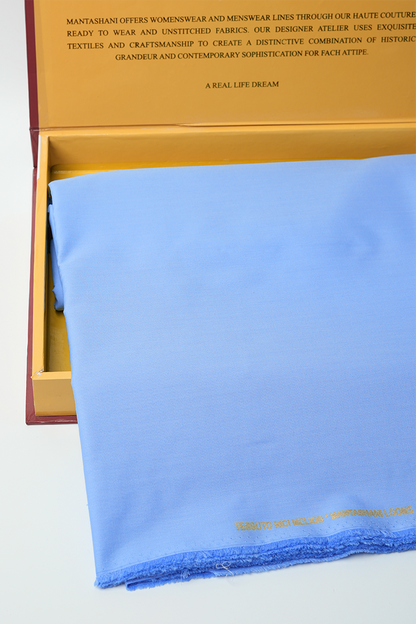 Taimar in sky blue presents a refined interplay between textile functionality and aesthetic clarity. Woven in a 60% cotton and 40% polyester blend, its 45sx45s yarn structure and balanced 180 GSM weight offer optimal stability, ideal for garments that demand both composure and fluidity. The shade captures a light tonal variation reminiscent of clear horizons, suited for transitional Eastern wear that favours breathability, ease of movement, and visual freshness. A considered choice for men who value timeless palette and fabric reliability across seasons.